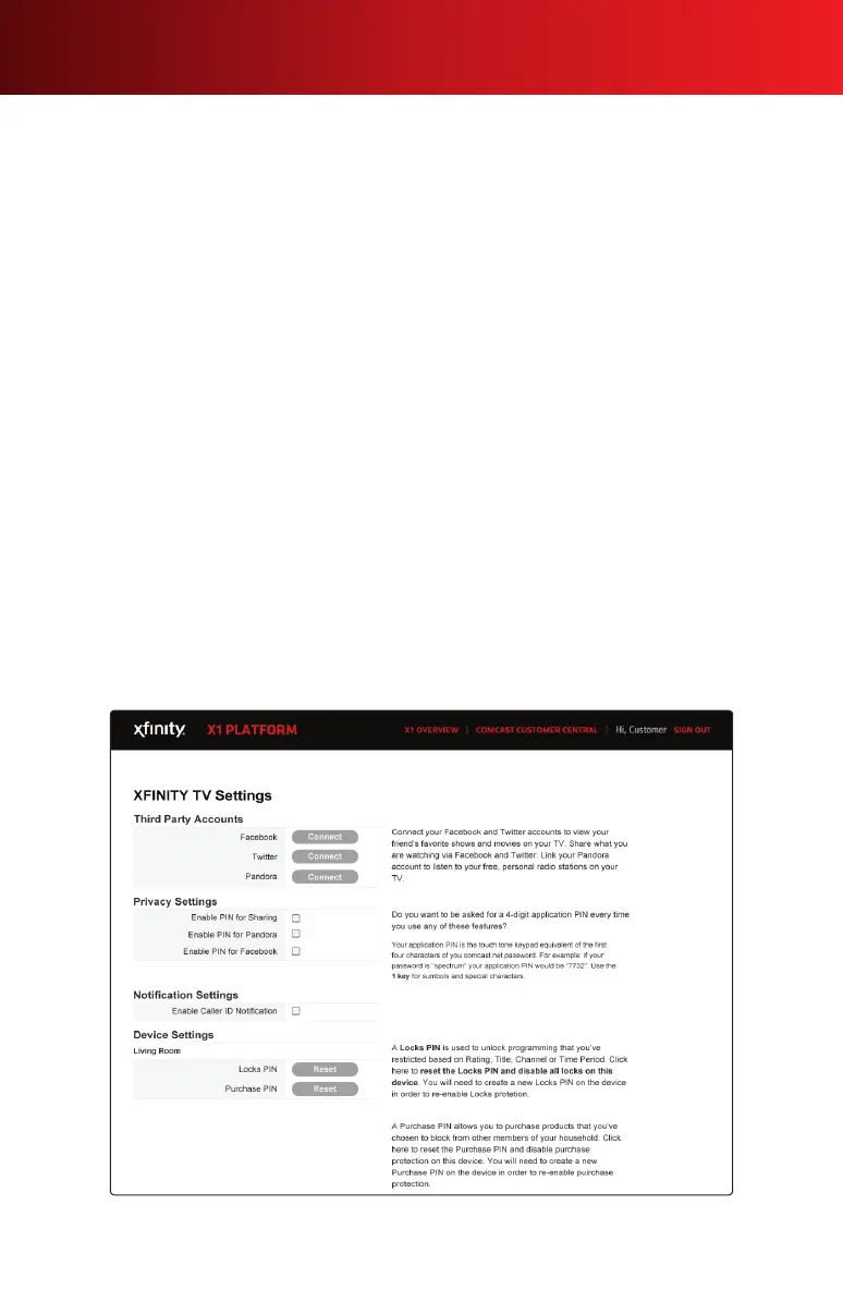 • Connect your Facebook, Twitter and Pandora accounts to your XFINITY service.