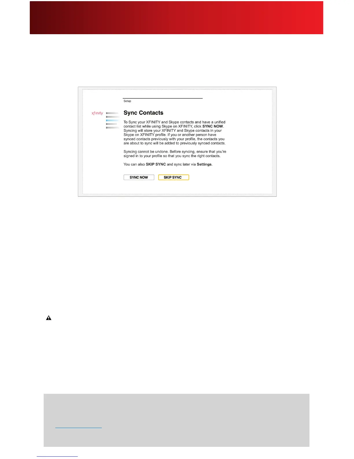 •SyncingwillstoreyourXFINITYandSkypecontactsinyourSkypeonXFINITYprole.Ifyouor