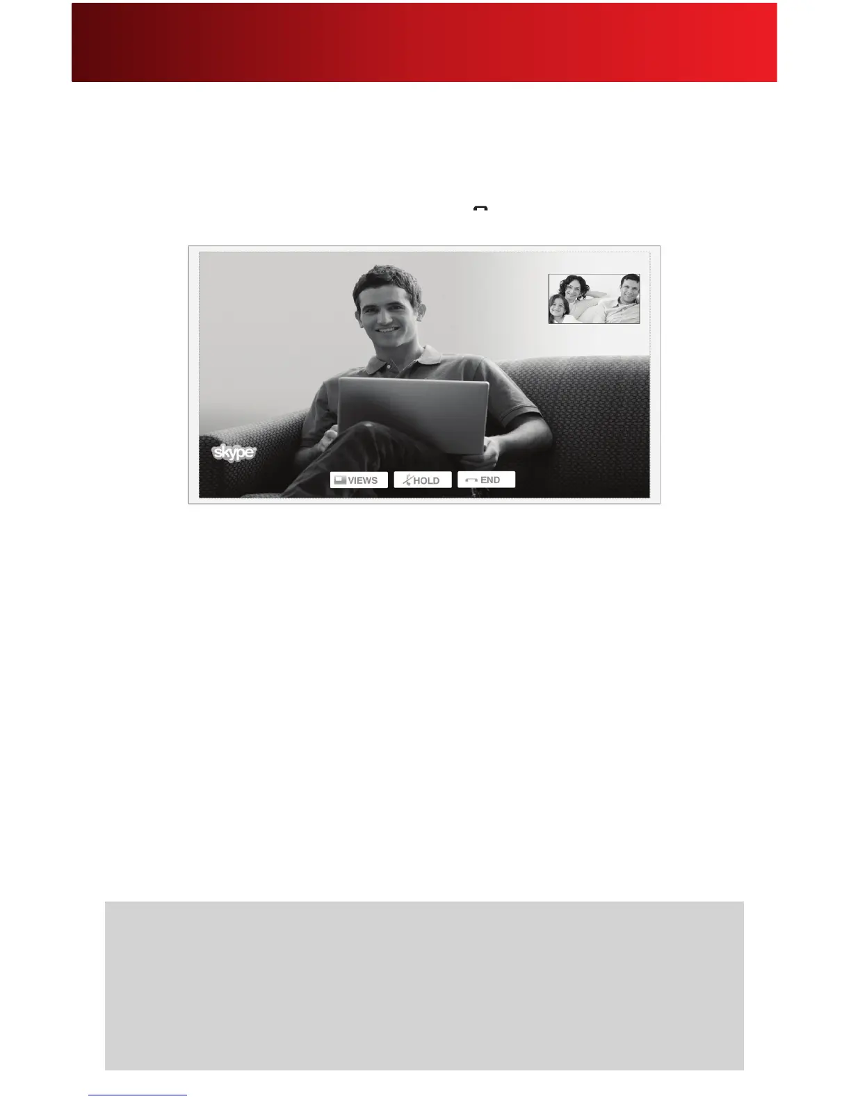 • YoucanmakeandacceptvideoandaudiocallswhilewatchingTV,includingOnDemandorDVR