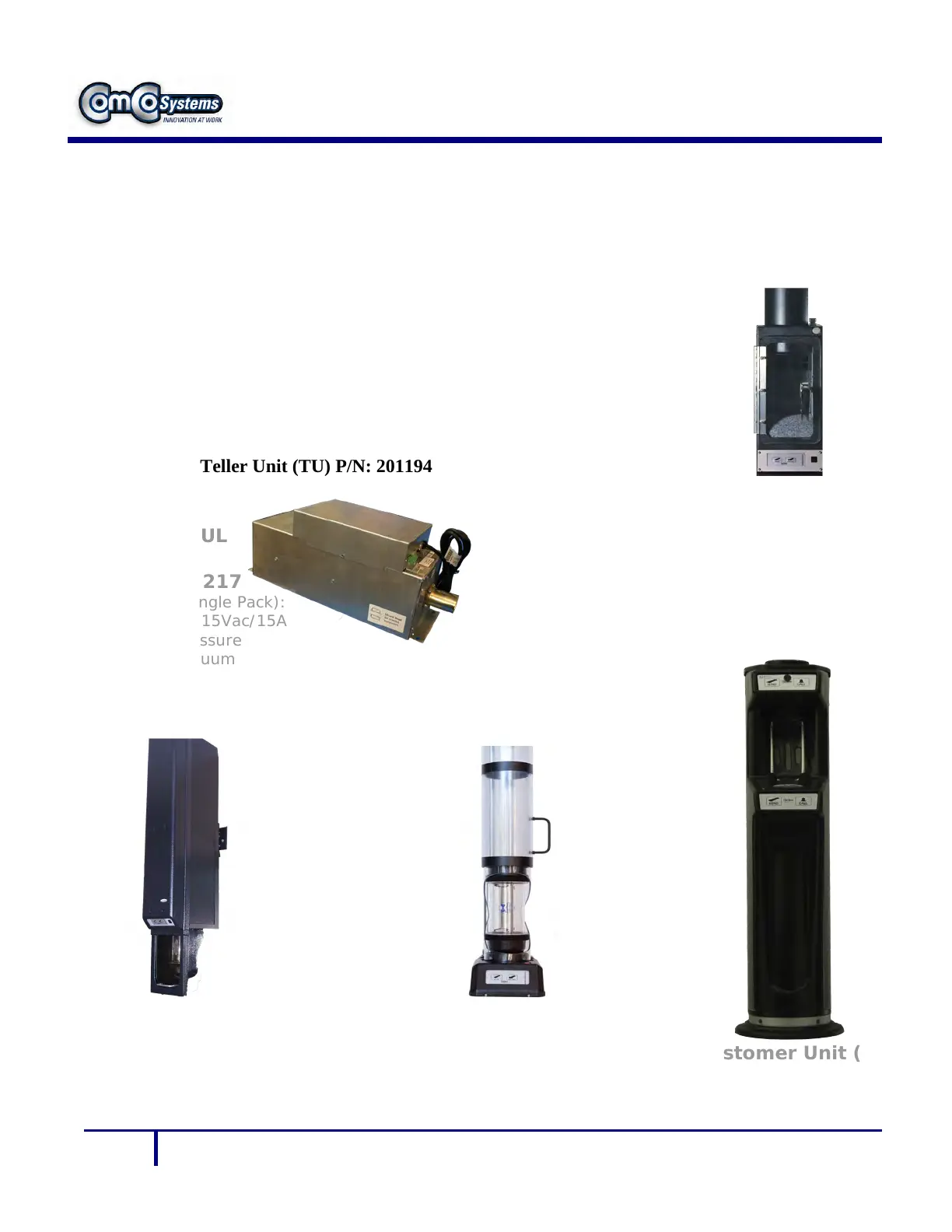 1. 521 Teller Unit (TU) P/N: 200501/200502