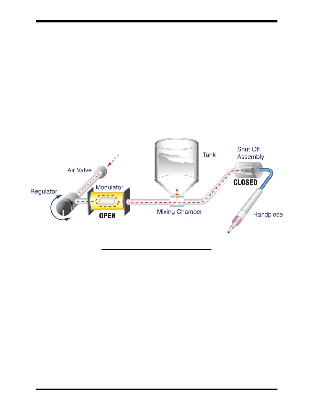and into the mixing chamber and abrasive tank. Air cannot escape through the nozzle
