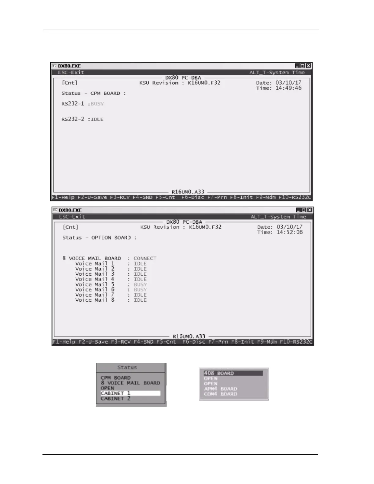 2. On the Status - OPTION BOARD screen the connect status can be either IDLE (ready for call)