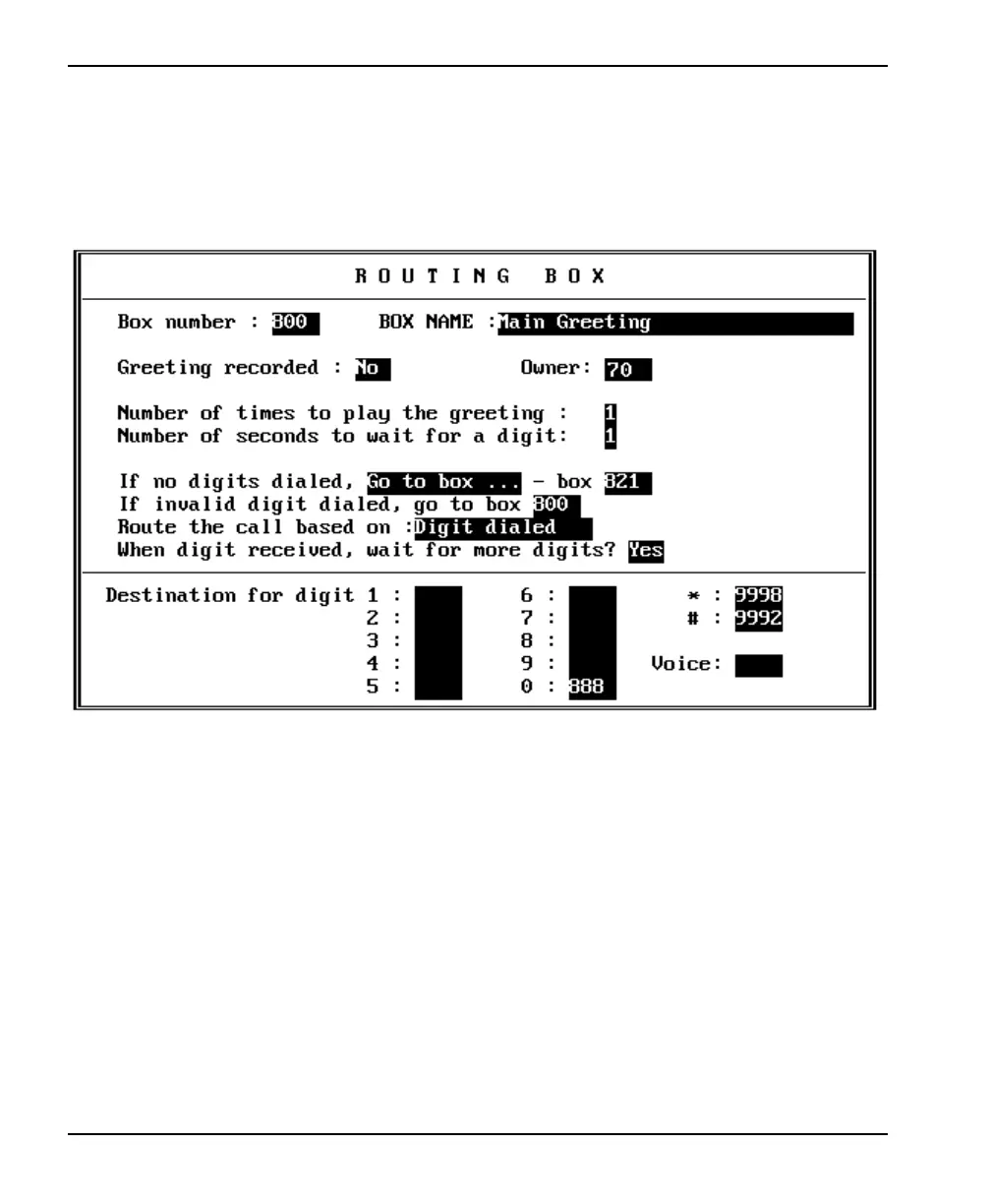 greeting can be recorded and stored for use with this Routing box, this box should be
