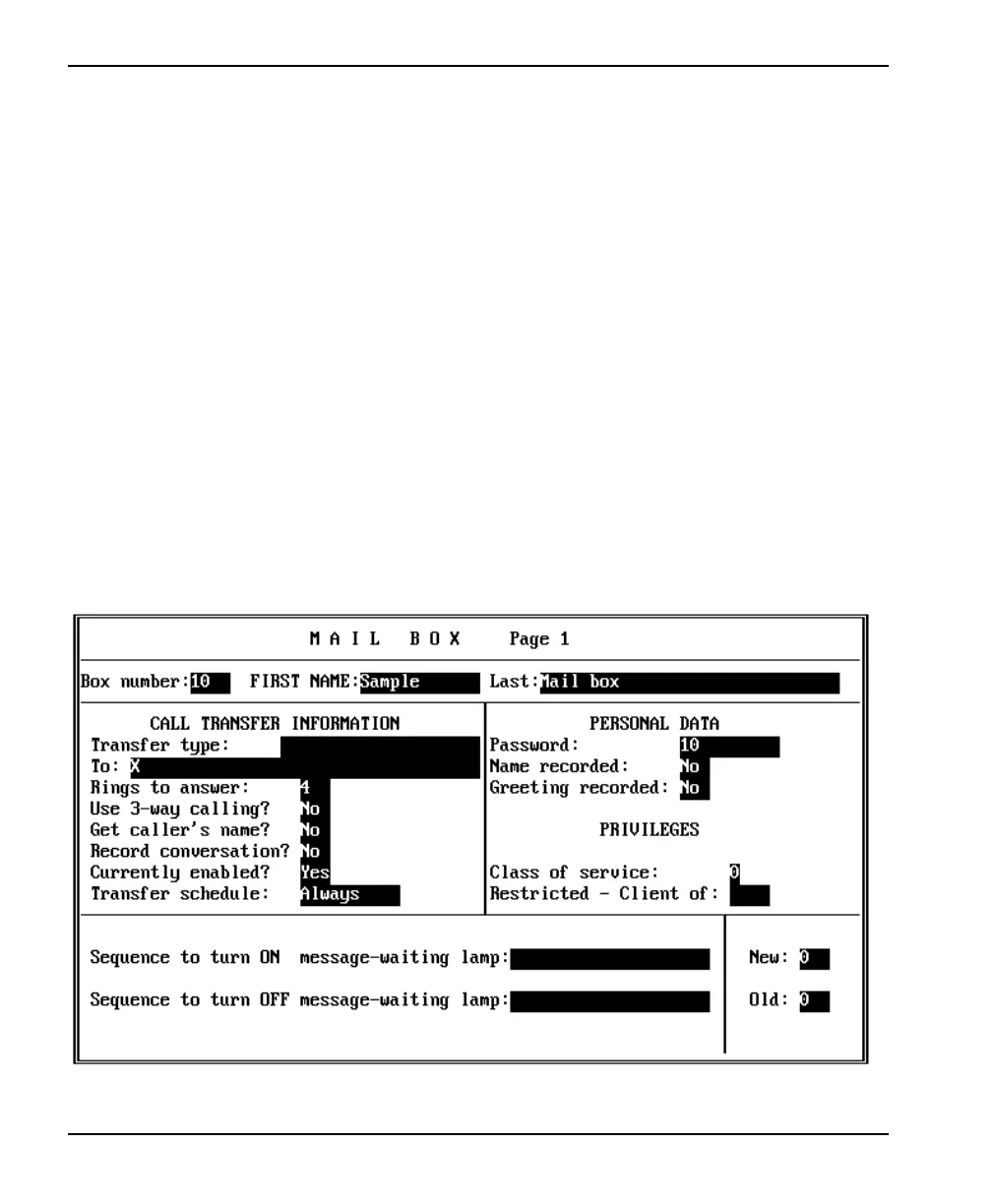 first name. Press <Enter> to move the cursor to the LAST field. Enter the mailbox
