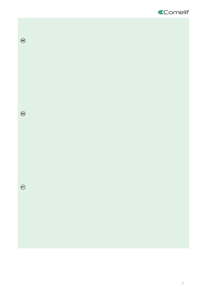 • Comelit Group S.p.A. lehnt jede Haftung ab bei Schäden durch bestimmungsfremden Gebrauch, Missachtung der