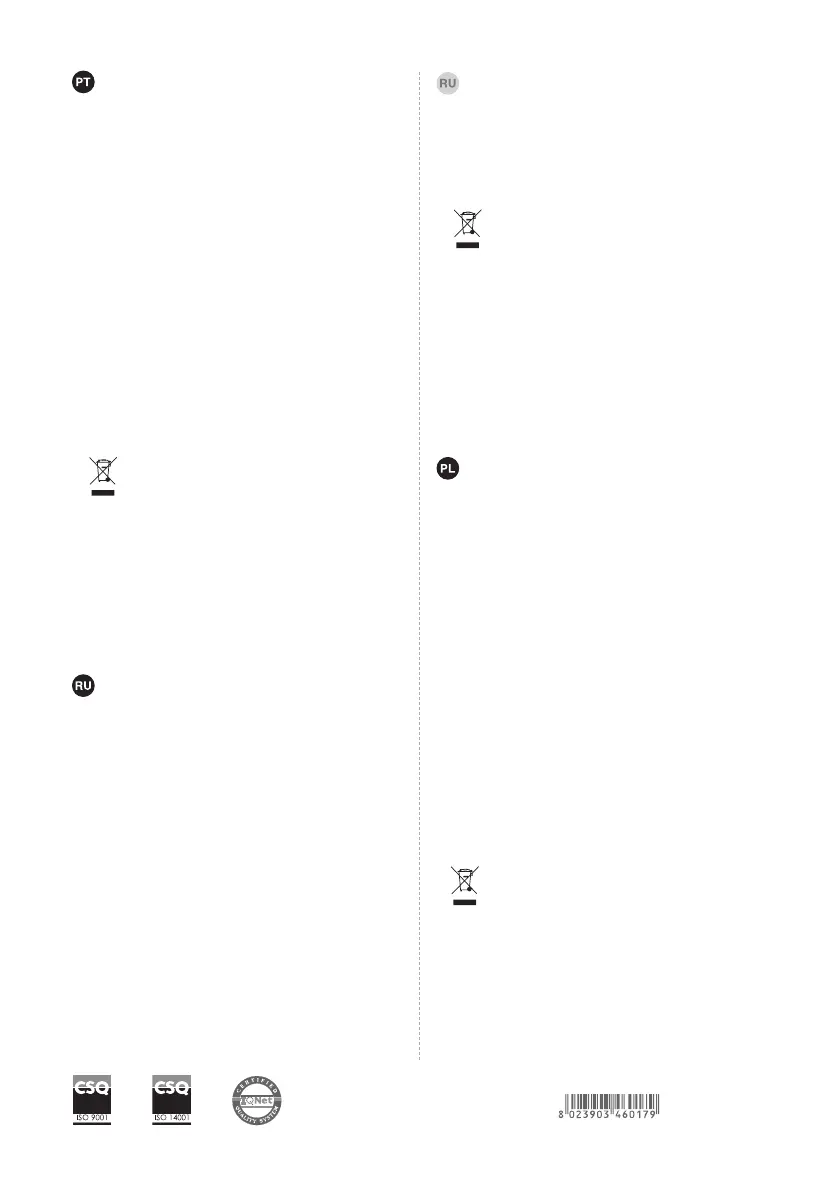 eliminado separadamente de outros resíduos. O utilizador deve levar o