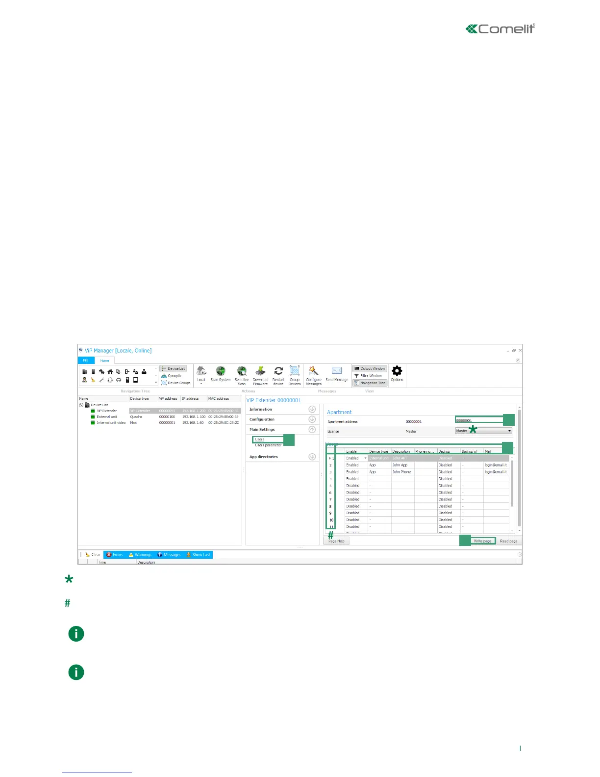its slave number. Each device must be assigned a type (internal unit, app or telephone), a description, the phone number (in the