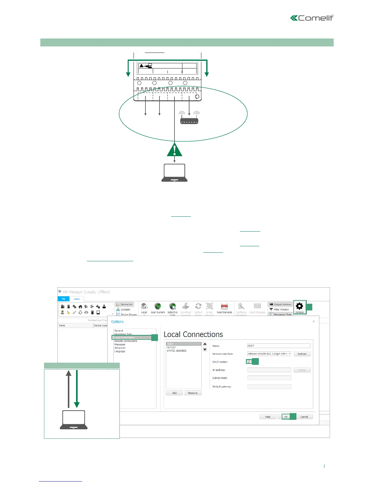 1. From Options [a] / Local connections [b] tick DHCP Enable [c] and confirm [d].