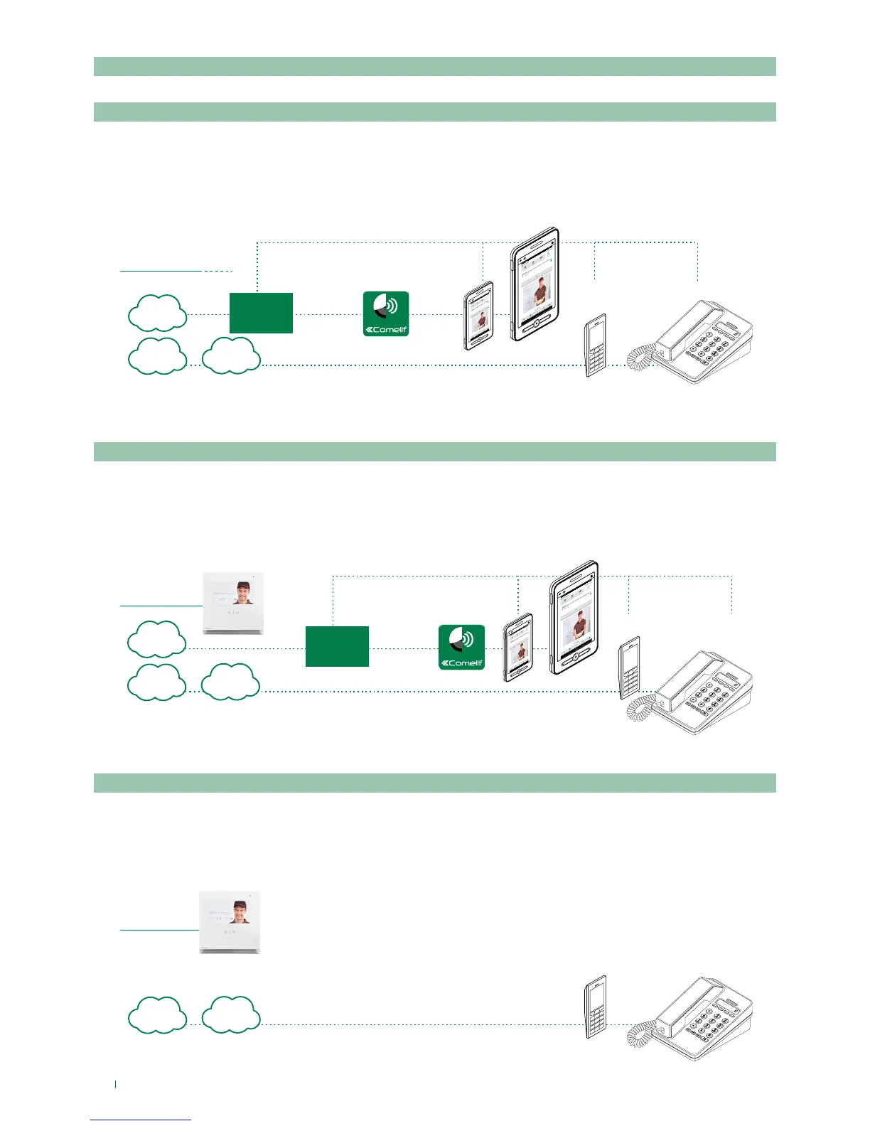 • Up to 15 slaves devices can be added for each apartment, including: Smartphone / Tablet + Comelit App, PSTN / GSM