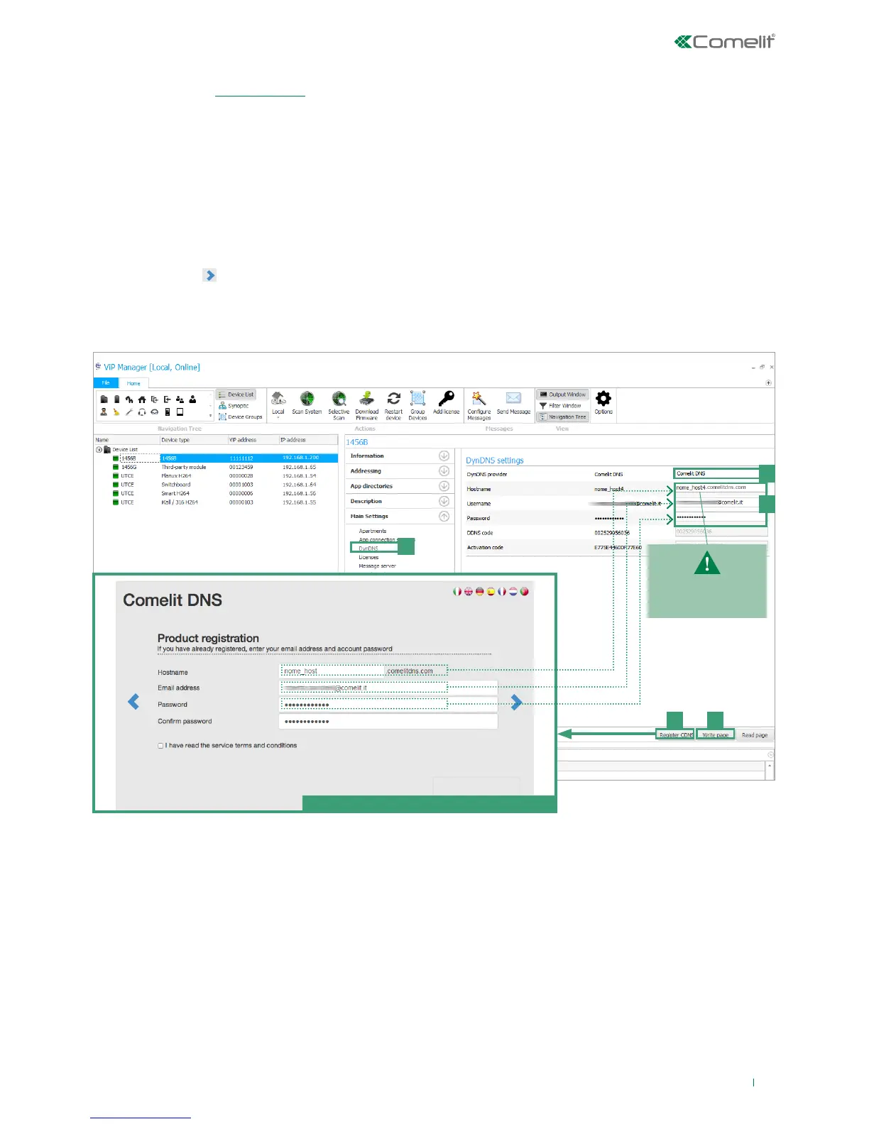 Comelit DNS registration form