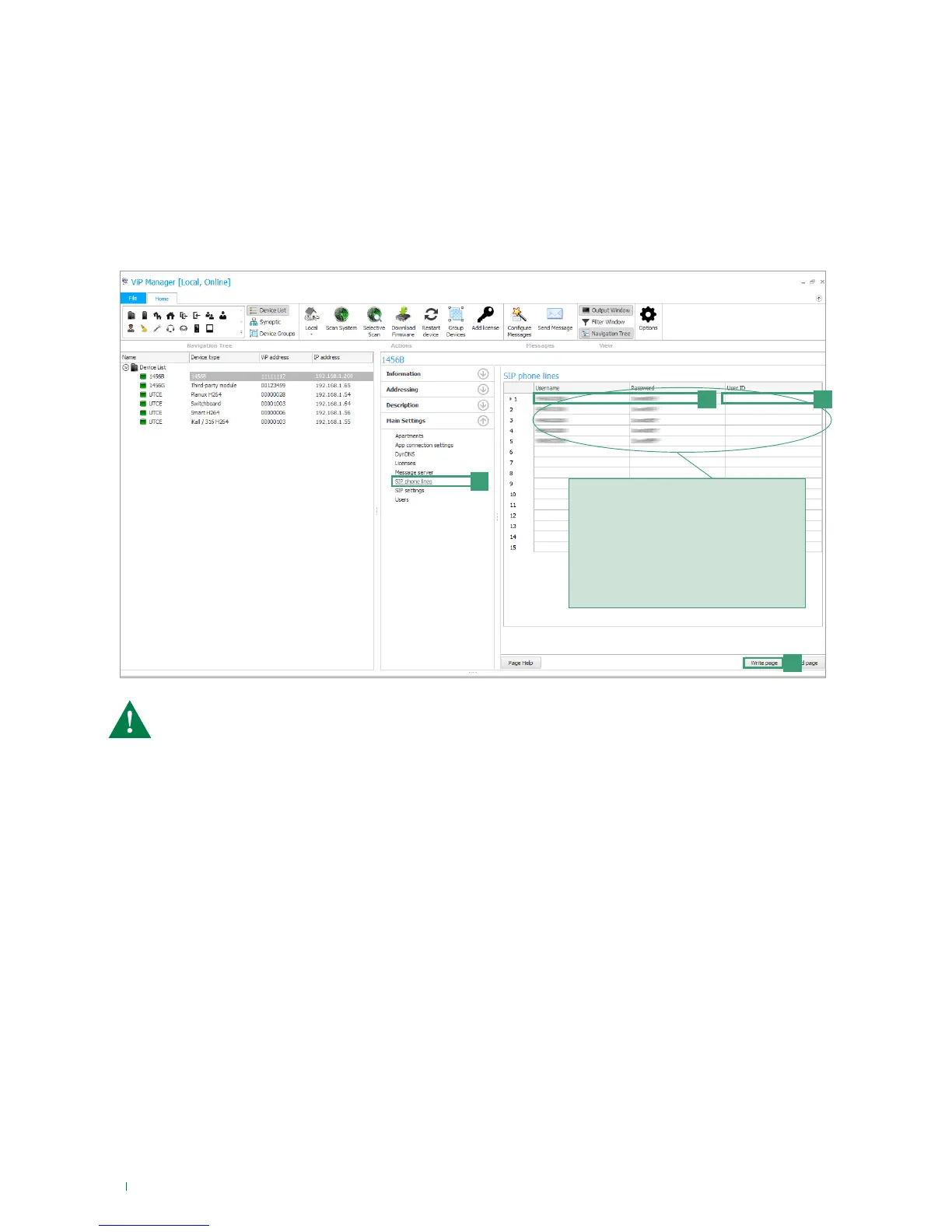 1. Select the device 1456B and select Main Settings/SIP phone lines [a].