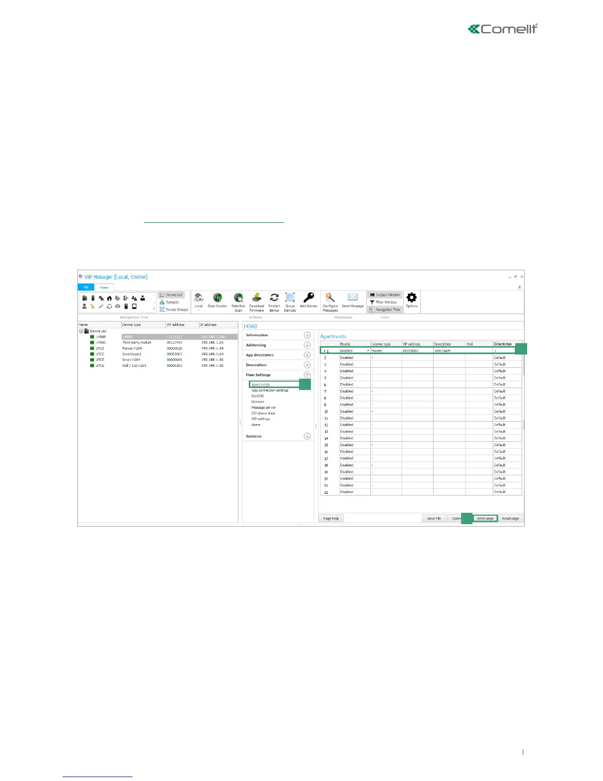 In the apartments configuration screen, each apartment can be assigned a license, a ViP address (unequivocal), a description to