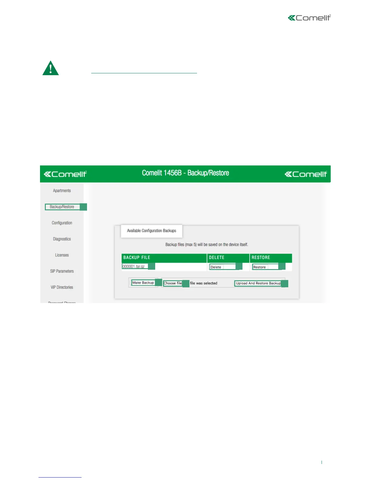 The backup and restore functions are only available from the configuration web pages (to access the web