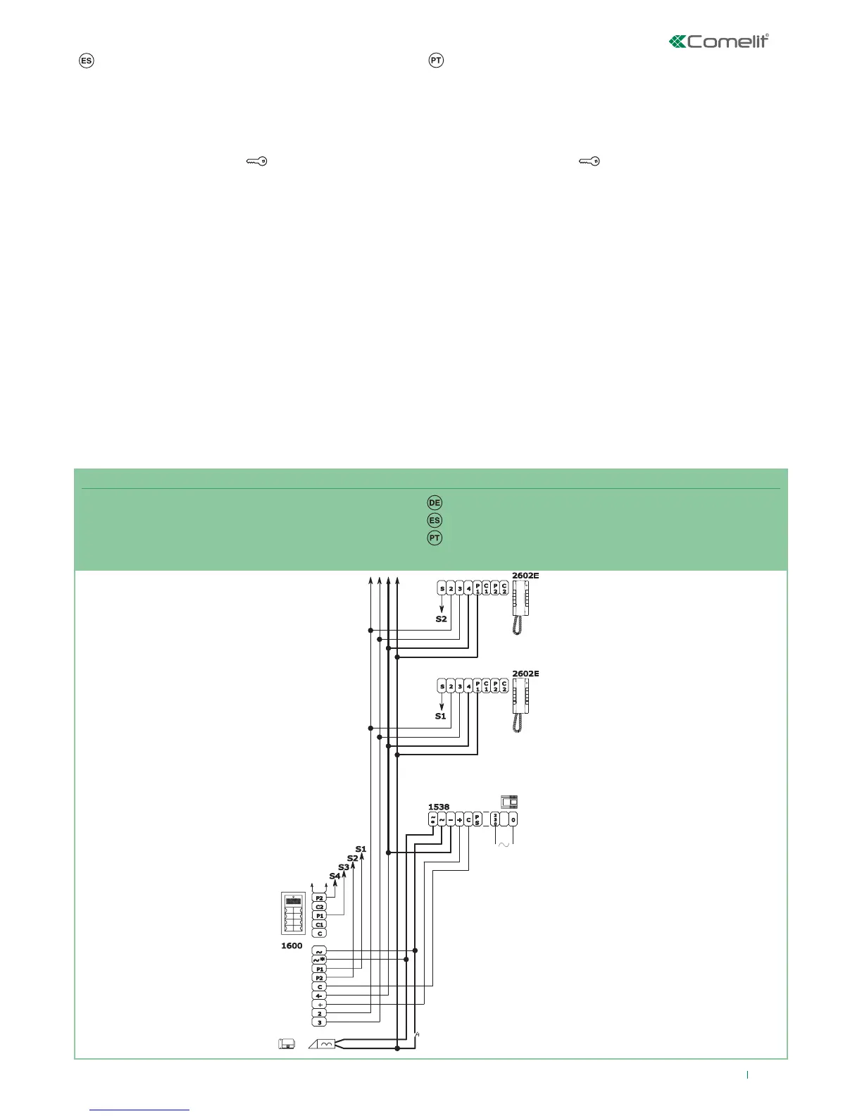 P2 C2 Terminais para botão P2 C. NO. 24 V 100 mA para vários serviços