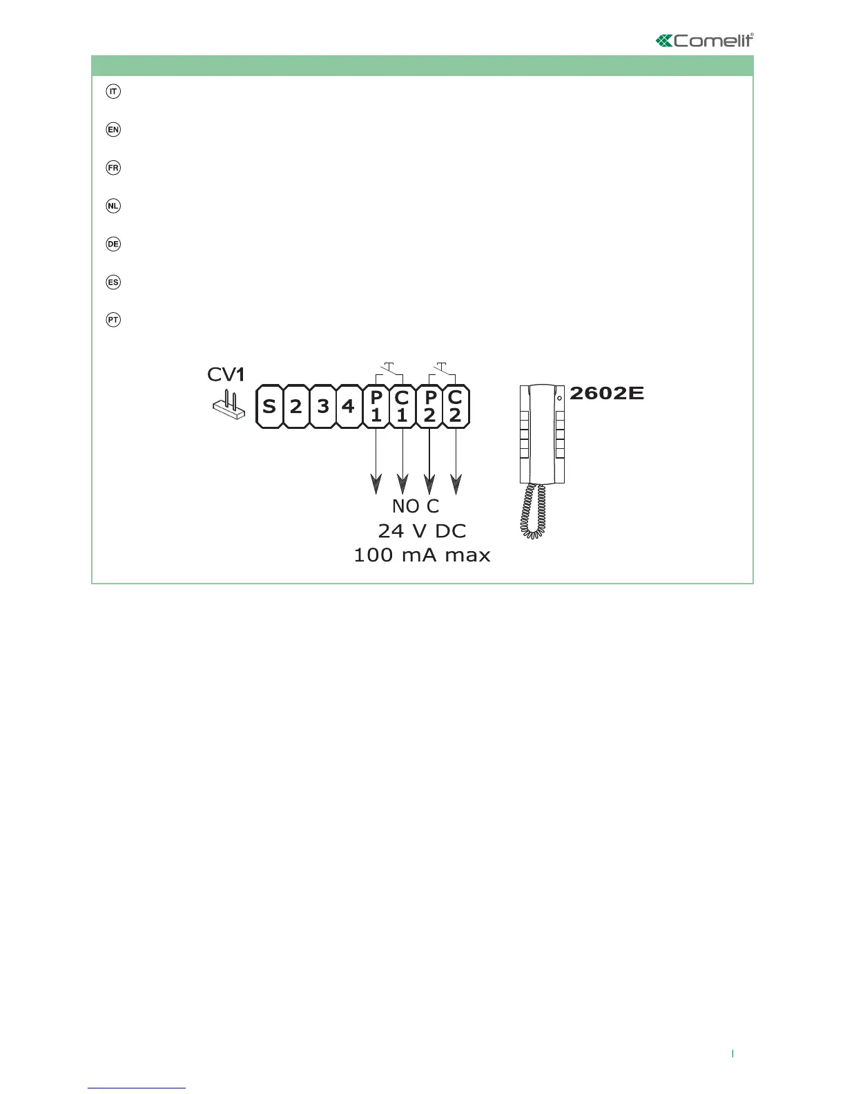 Use for various uses of pushbutton P1 and P2 on the intercom Art. 2602E: remove the jumper CV1 for clean contact C. NO. on