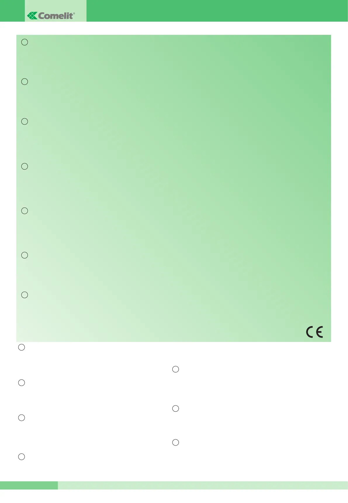 • Tutti gli apparecchi devono essere destinati esclusivamente allʼuso per cui sono stati concepiti. Comelit Group S.p.A. declina ogni responsabilità per un