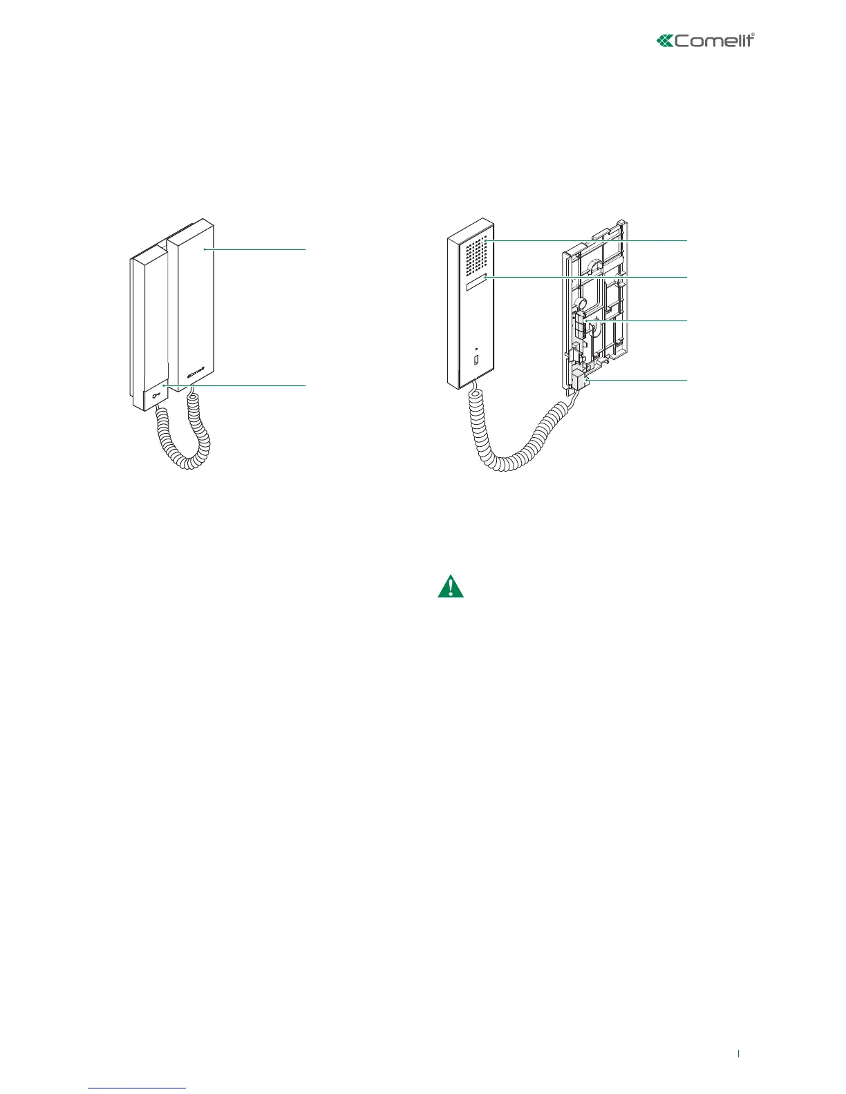 MINI series door-entry phone for traditional systems, with electronic call, handset and key button.