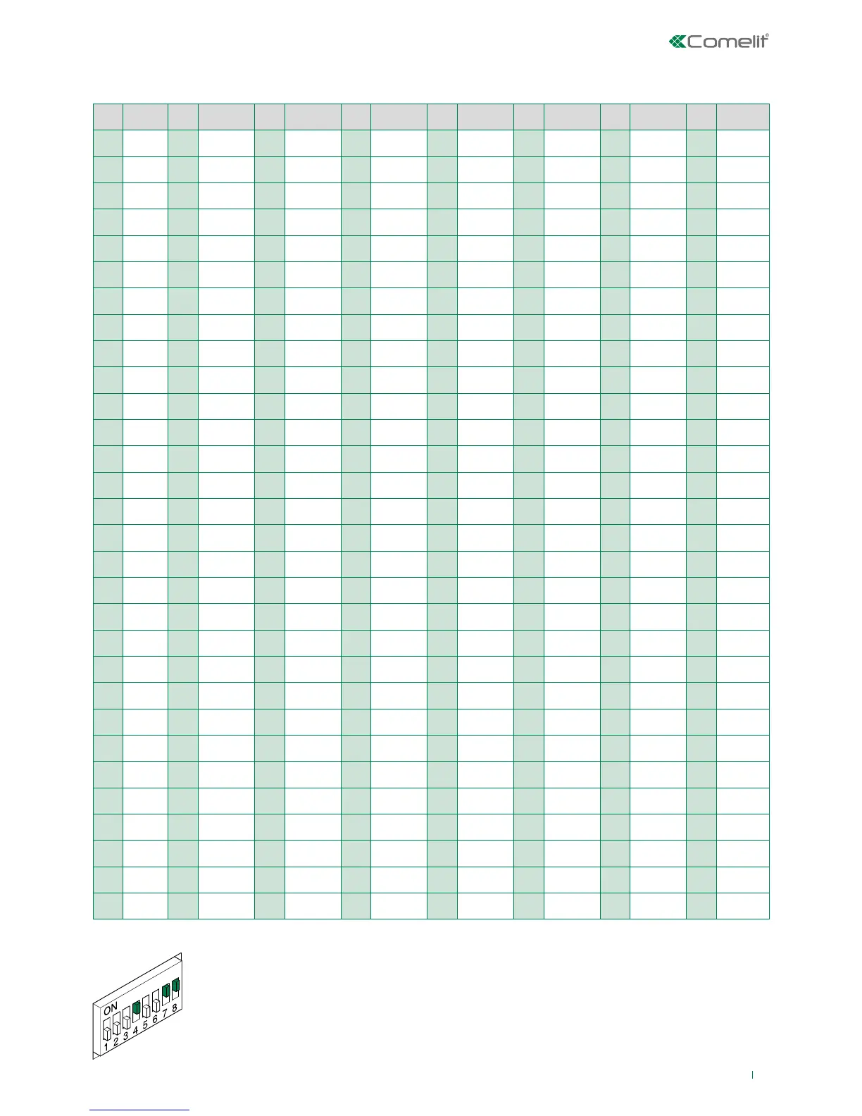 Dip switch programming table