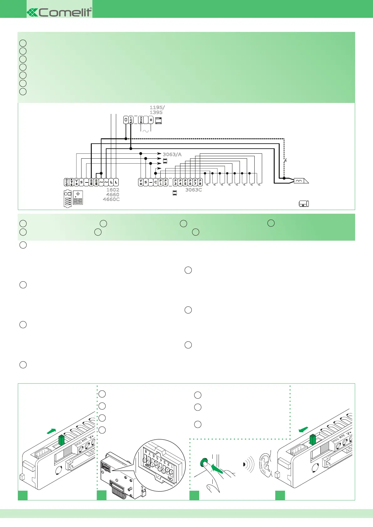 2. Cortocircuitare C e - su 1 dei moduli Art. 3063/A, Art. 3063C, alimentare il posto