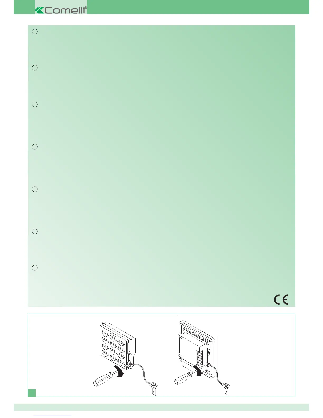 Tutti gli apparecchi devono essere destinati esclusivamente all’uso per cui sono stati concepiti. Comelit Group S.p.A. declina ogni responsabilità per un