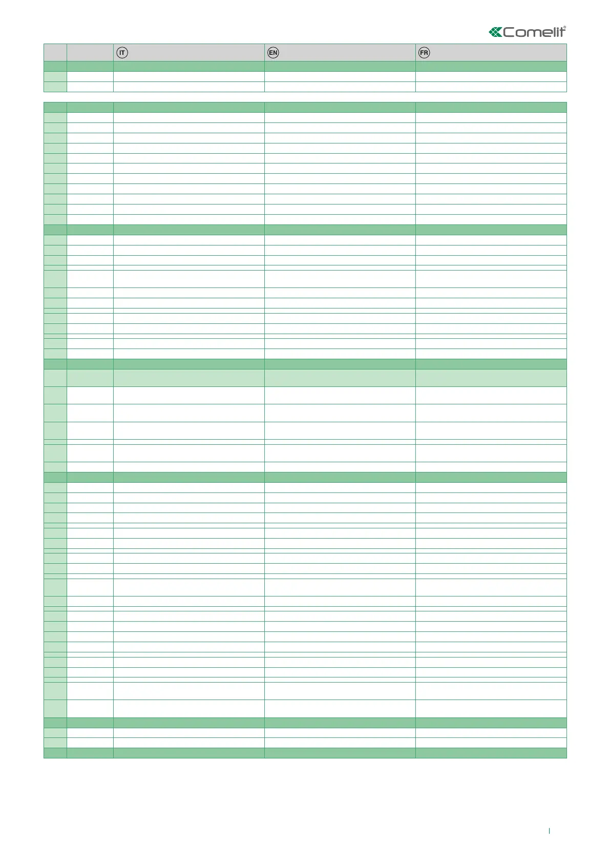 209 1,5,7,8 Reset dopo apriporta in fonica: disattivo Reset after lock-release in audio: disabled Reset après ouverture gâche en phonie: non actif