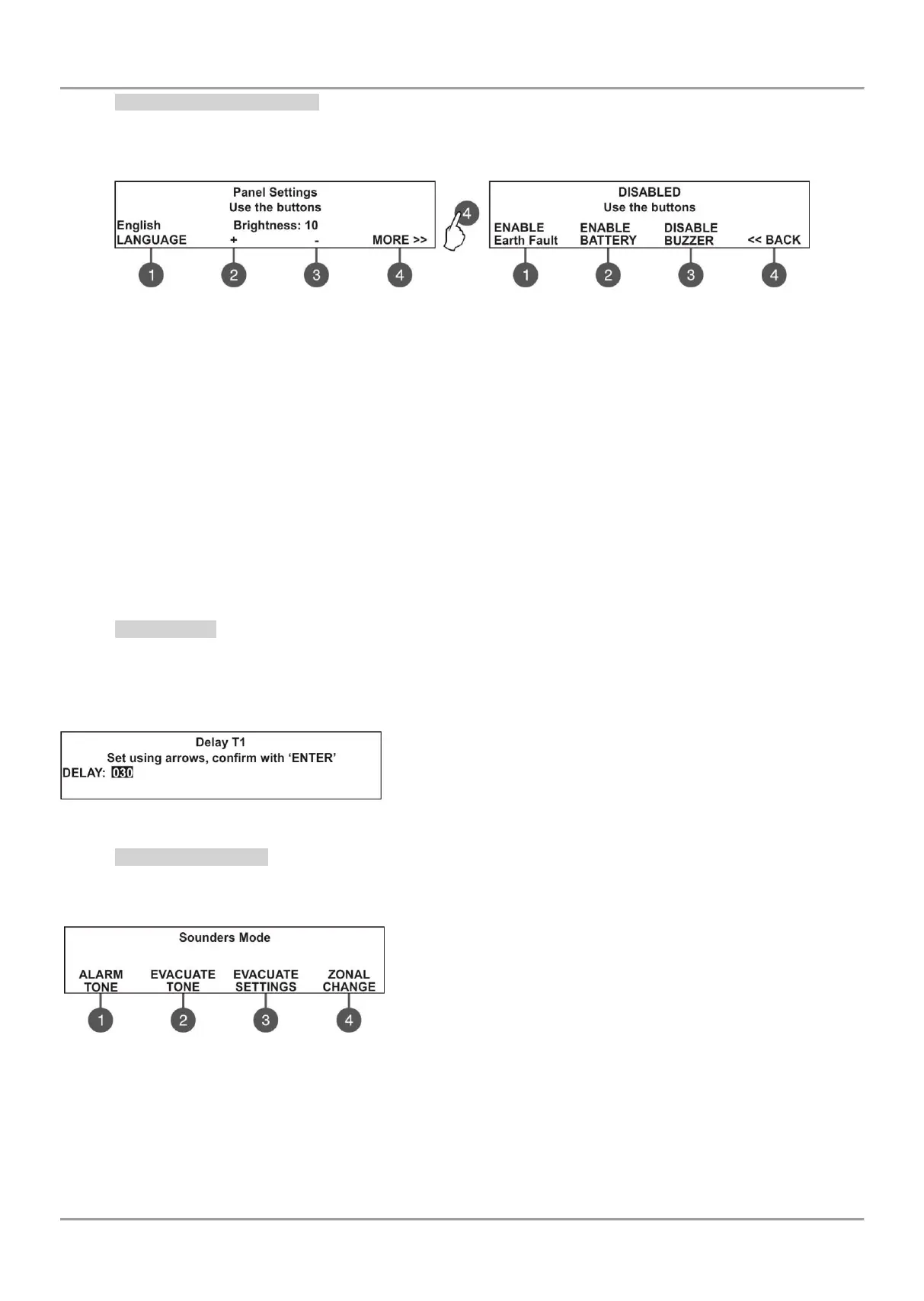 (3) EVACUATE SETTINGS – The menu button is active only in ZONAL operation mode. Press it to make the following