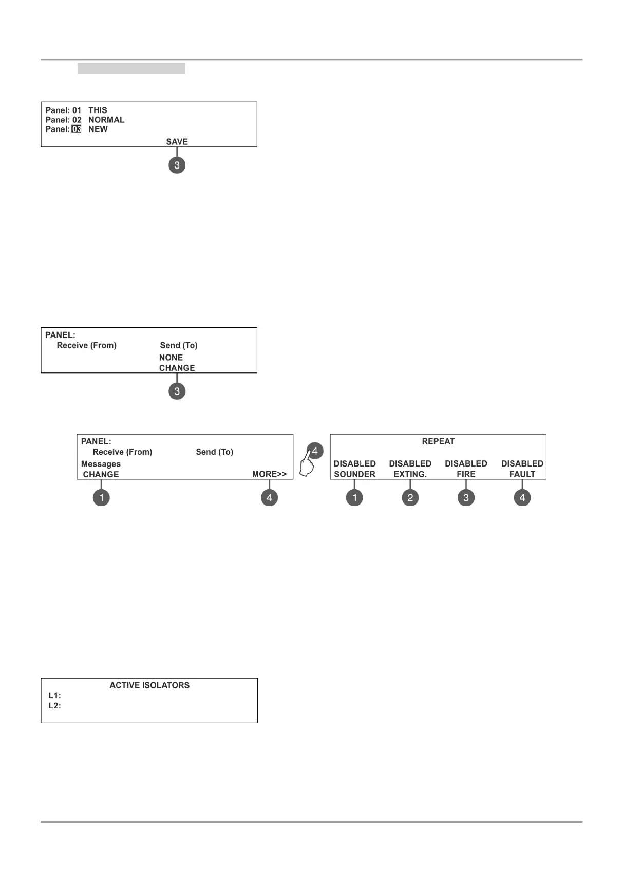 reported from a panel connected to the network. In the REPEAT screen enable the outputs of the panel for repeating.