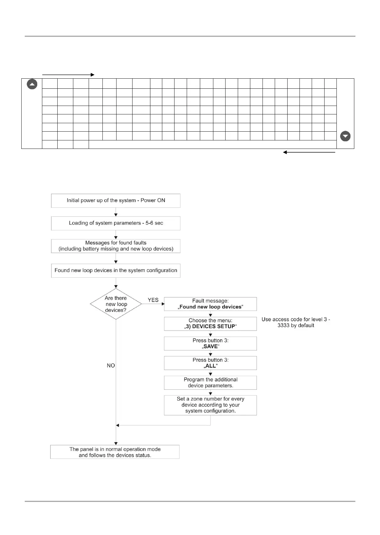 In device or zone name entering mode every pressing of up/ down arrow button changes the entered letter or symbol.