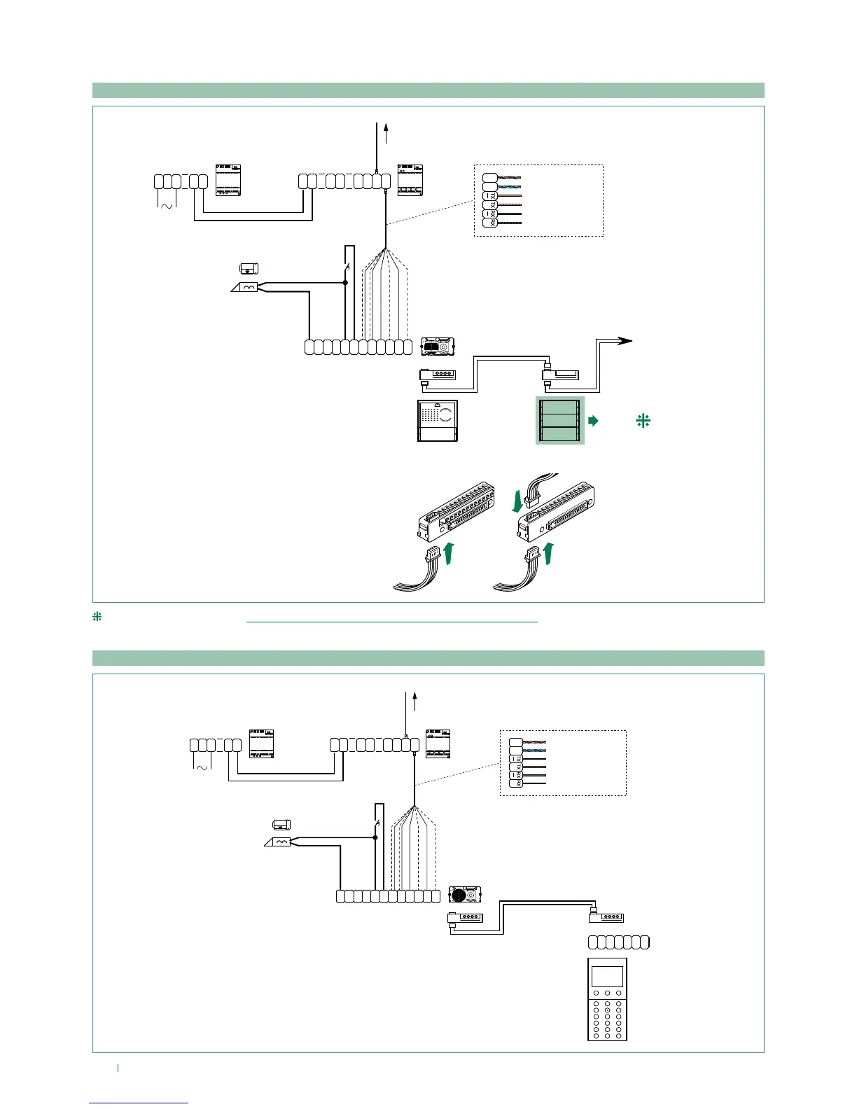 Comelit 4682HD - Connection of Ikall modules; Connection of button modules 33433, 33434, 33436, 33433 M, 33434 M, 33436 M; Connection of Art. 3360 B, 3360 BM