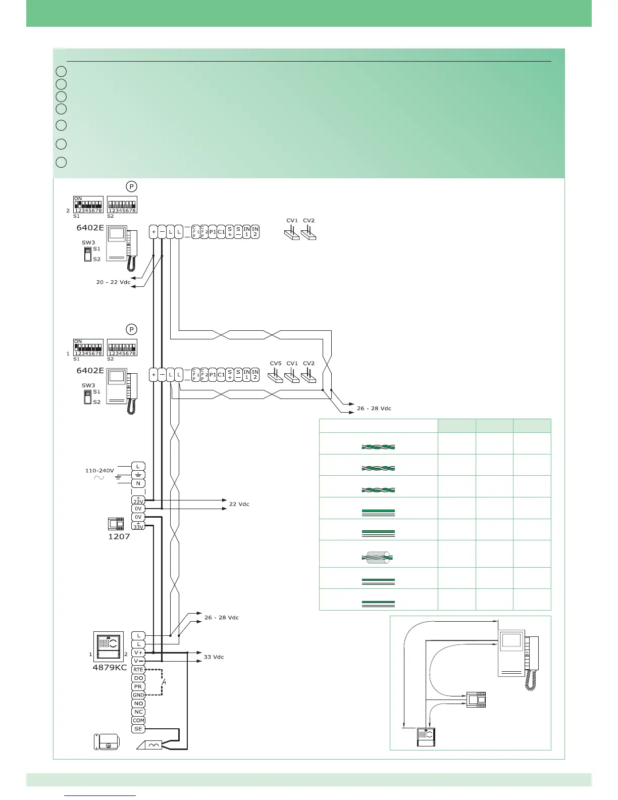 Esquema básico para kits bifamiliares Art. 8172IMC com ligação em cascata. Colocação em funcionamento/controlo das tensões do
