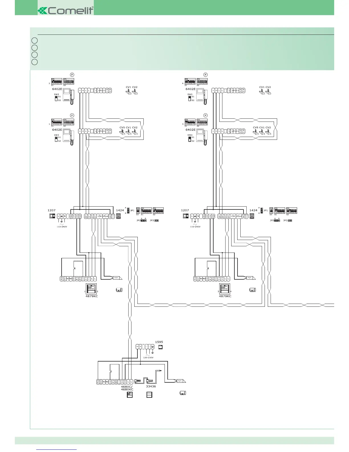 Diagram for connecting 30 Magis Kits (maximum) to the main entrance panel. Cascade connection of Magis using Art. 1424.