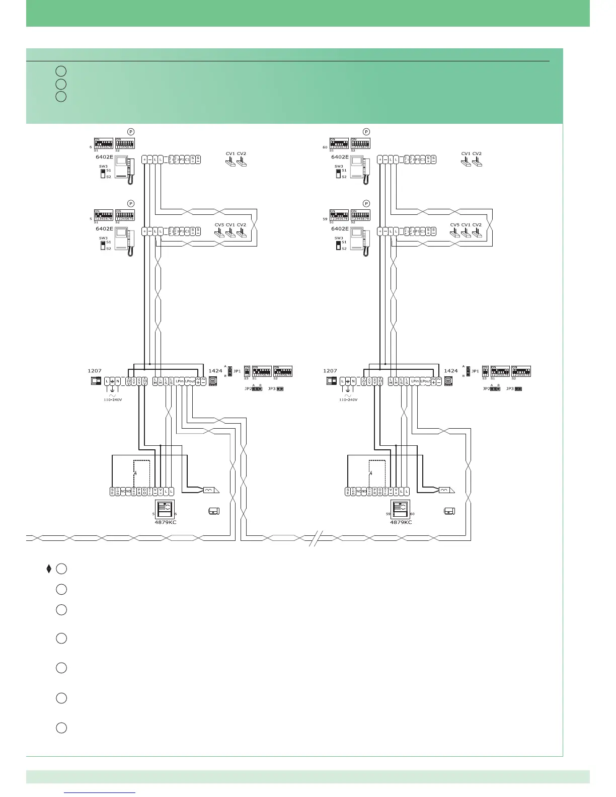 Plan für den Anschluss von 30 Magis Kit (max.) an die Haupttür. Anschluss von Magis in Kaskadenschaltung mit Art. 1424.