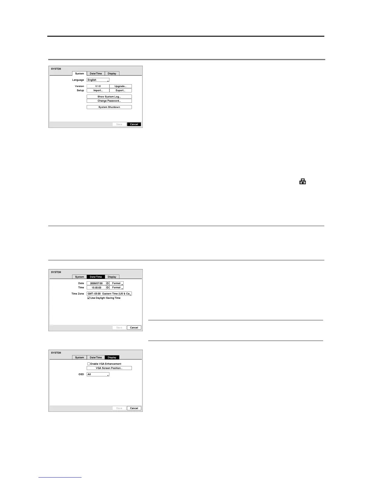 NOTE: Even after changing the DVR settings by importing saved settings, the time-related settings (Date/