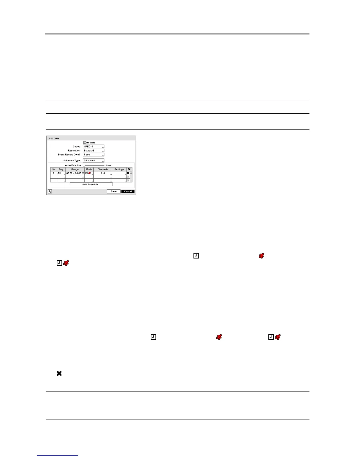 – Channels: Choose which cameras will be recorded.