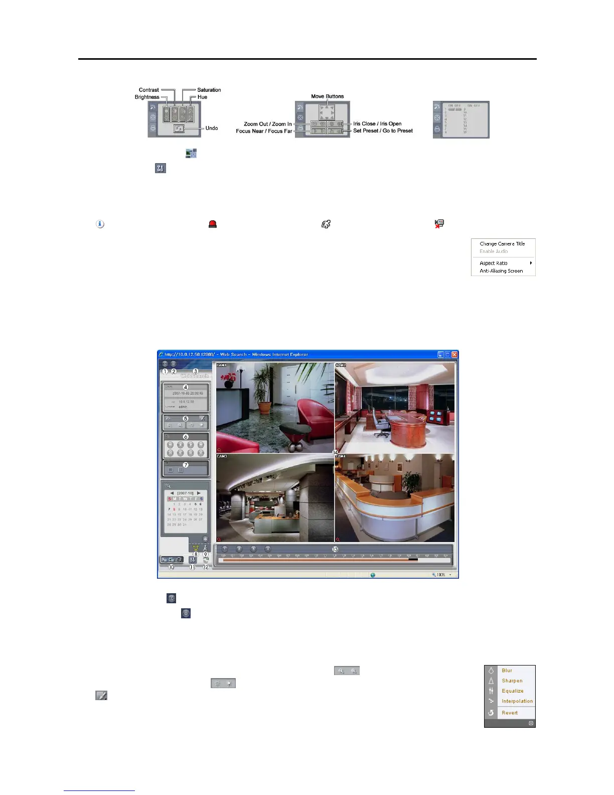 ⑤ Zoom/Brightness Adjust/Image Processing: Click to zoom out or zoom in