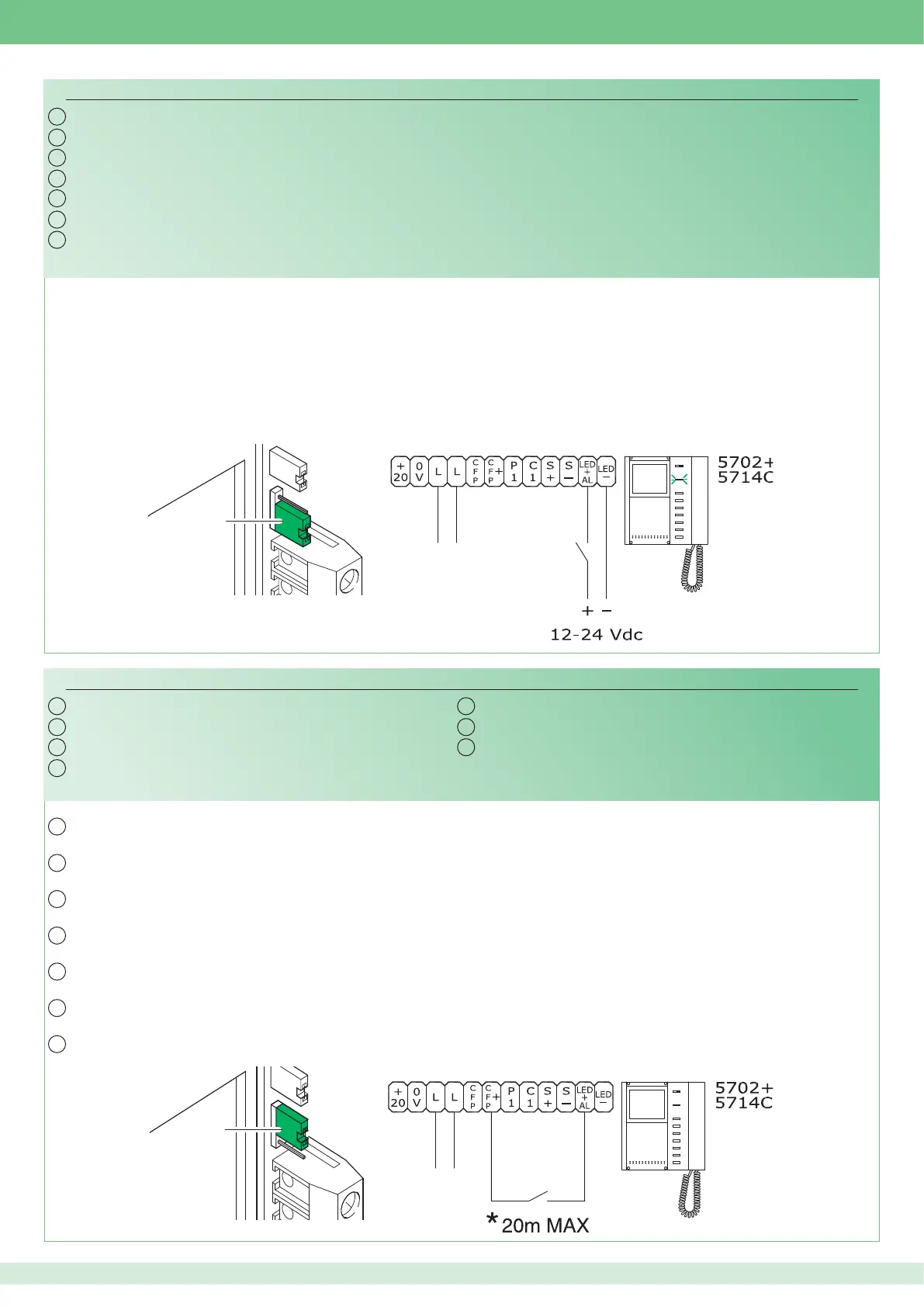 El cierre del contacto provoca el envío de una señalización de alarma genérica a la centralita de conserjería