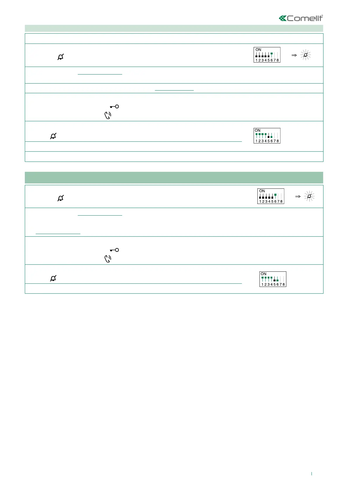 Example: For button 1= Call to secondary switchboard (CCS) and button 2= Panic (PAN), set S2 DIP-switches 1-2-3-4 as specified in row I of the
