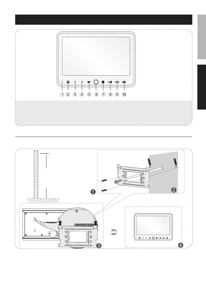 2. Mount backing plate of indoor-monitor by drilling holes in the wall, and screwing the backing plate