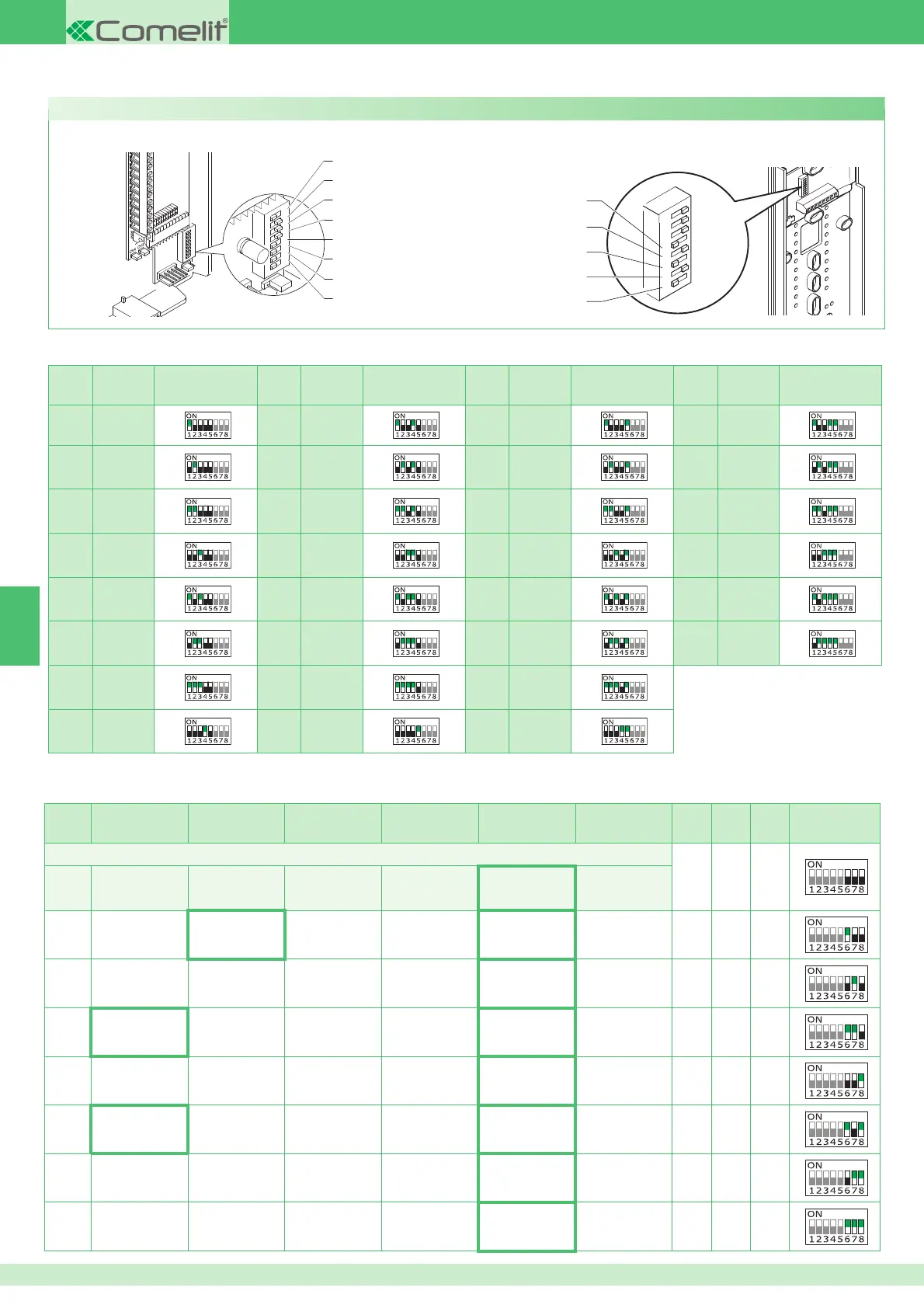 direcciones de llamada contiguas (indicadas por la misma letra AA...CC...00 en la tabla de programación de los microinterruptores, ilustrada en la pág. 64).