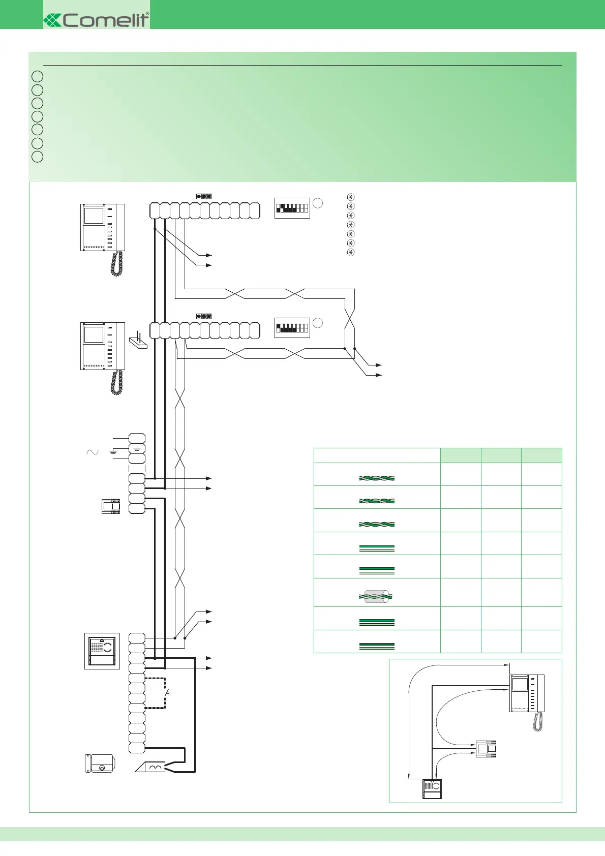 Schema base per kit bifamiliari Art. 8173I con collegamento in cascata. Messa in funzione/verifi ca tensioni di impianto a riposo.
