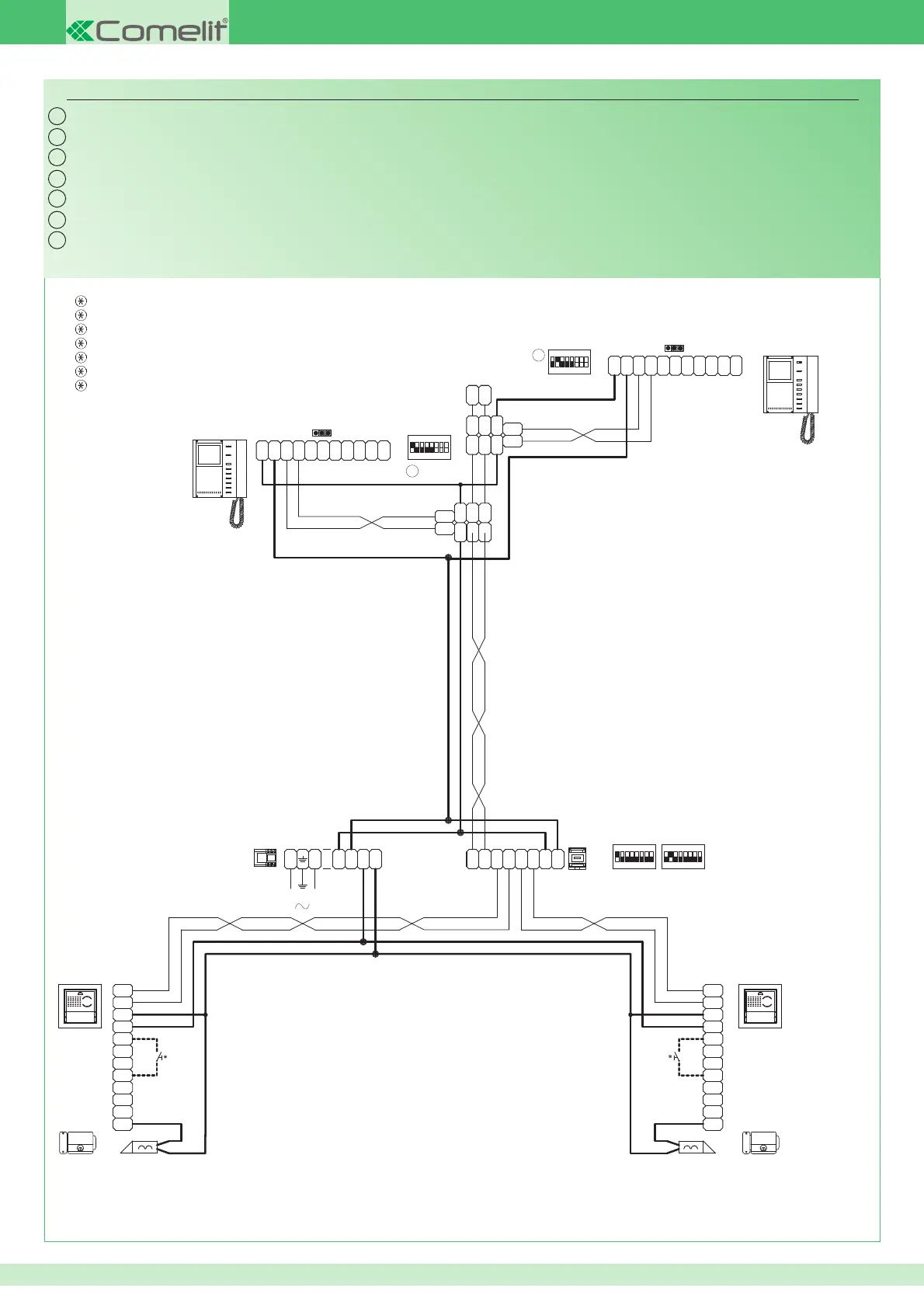 Schema per kit bifamiliari Art. 8173I ampliati con un secondo Art. 4879K. Collegamento in derivazione.