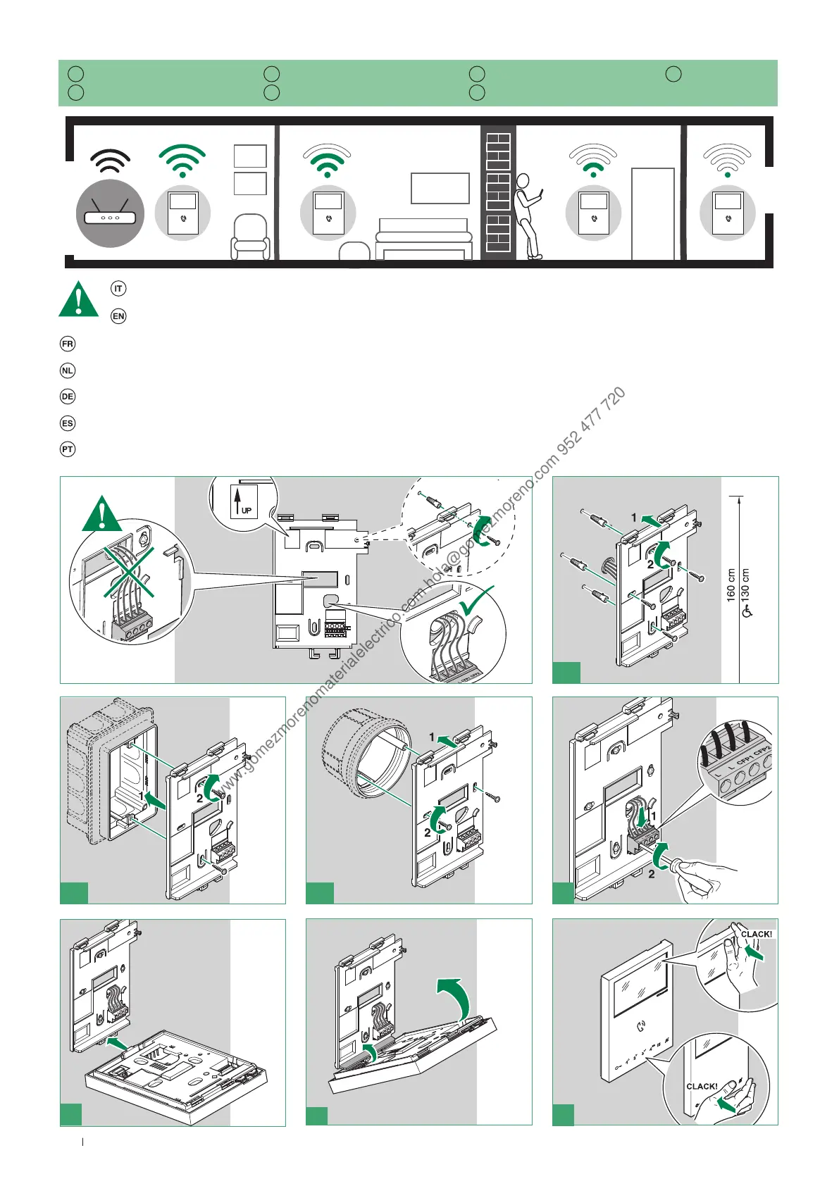 Controleer voor de definitieve installatie van de monitors op het toestel de goede ontvangst van het WiFi-signaal: de afstand tussen router en monitor, de dikte
