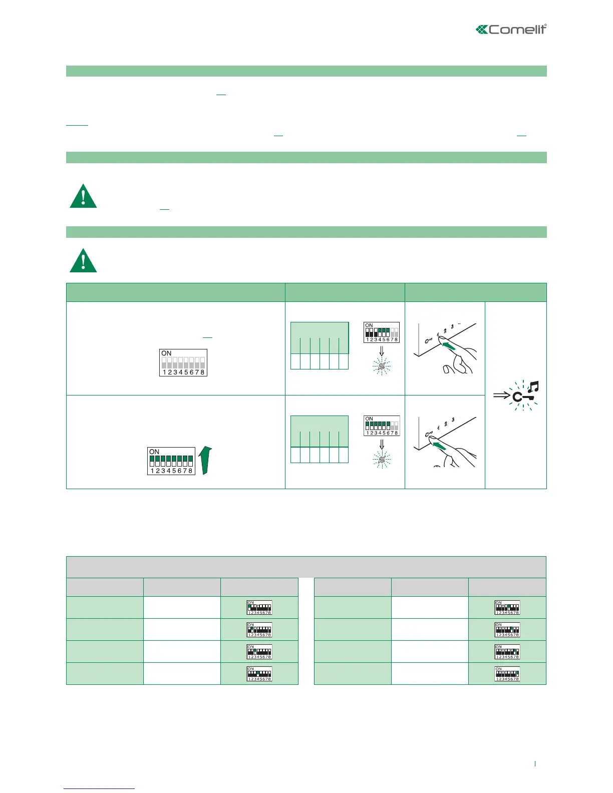 At the end, set S2 DIP switches 1-2-3-4 to the combination 1111 (PROG setting in the configuration tables on pages