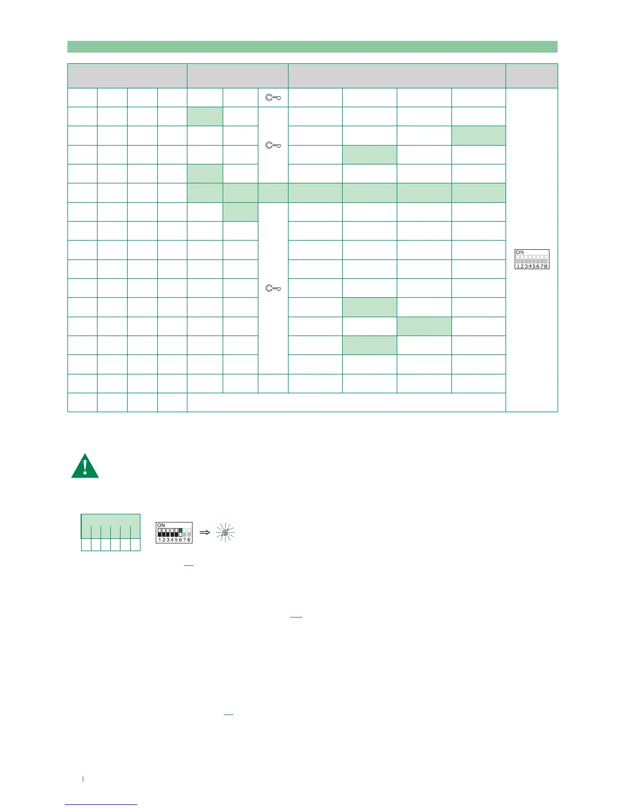 E.g.: for P1= generic actuator, set S2 DIP switches 1-2-3-4 to the combination 0000 or 1100 or 0010 (P1=ACT), set S1 DIP