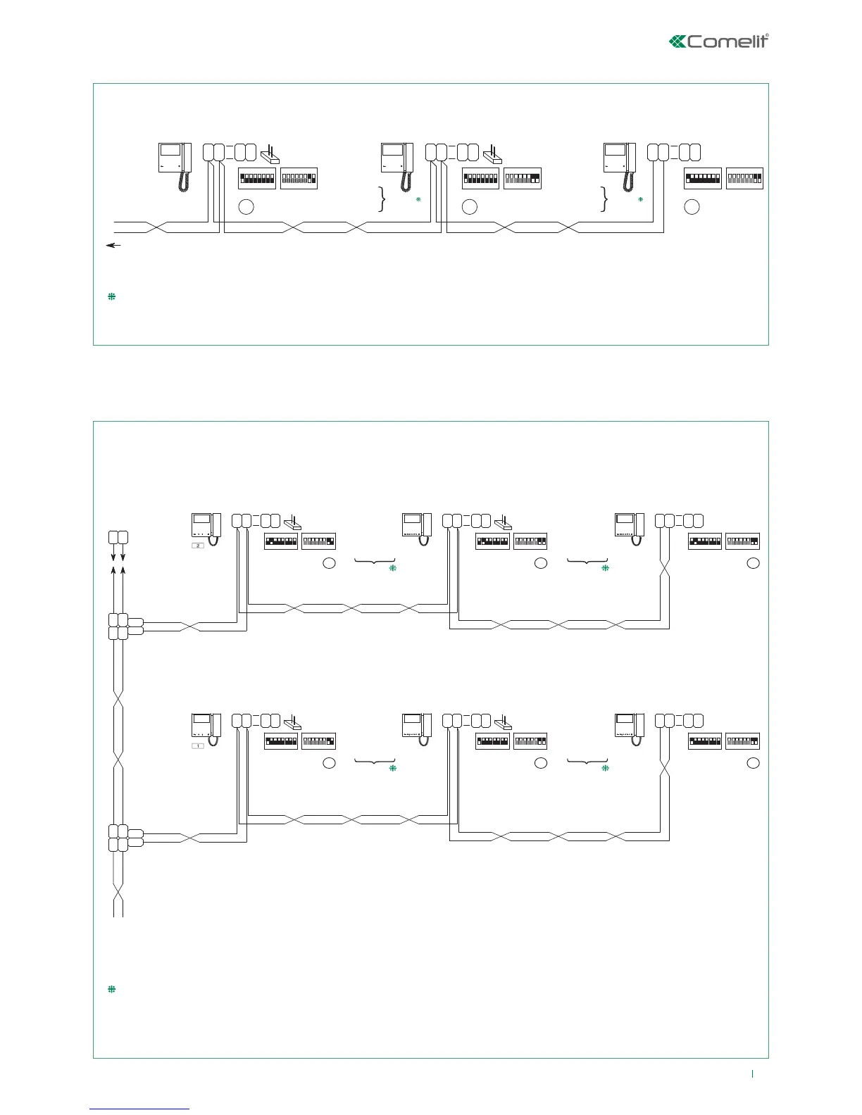 Connection diagram for two-family system with one main monitor and 2 secondary