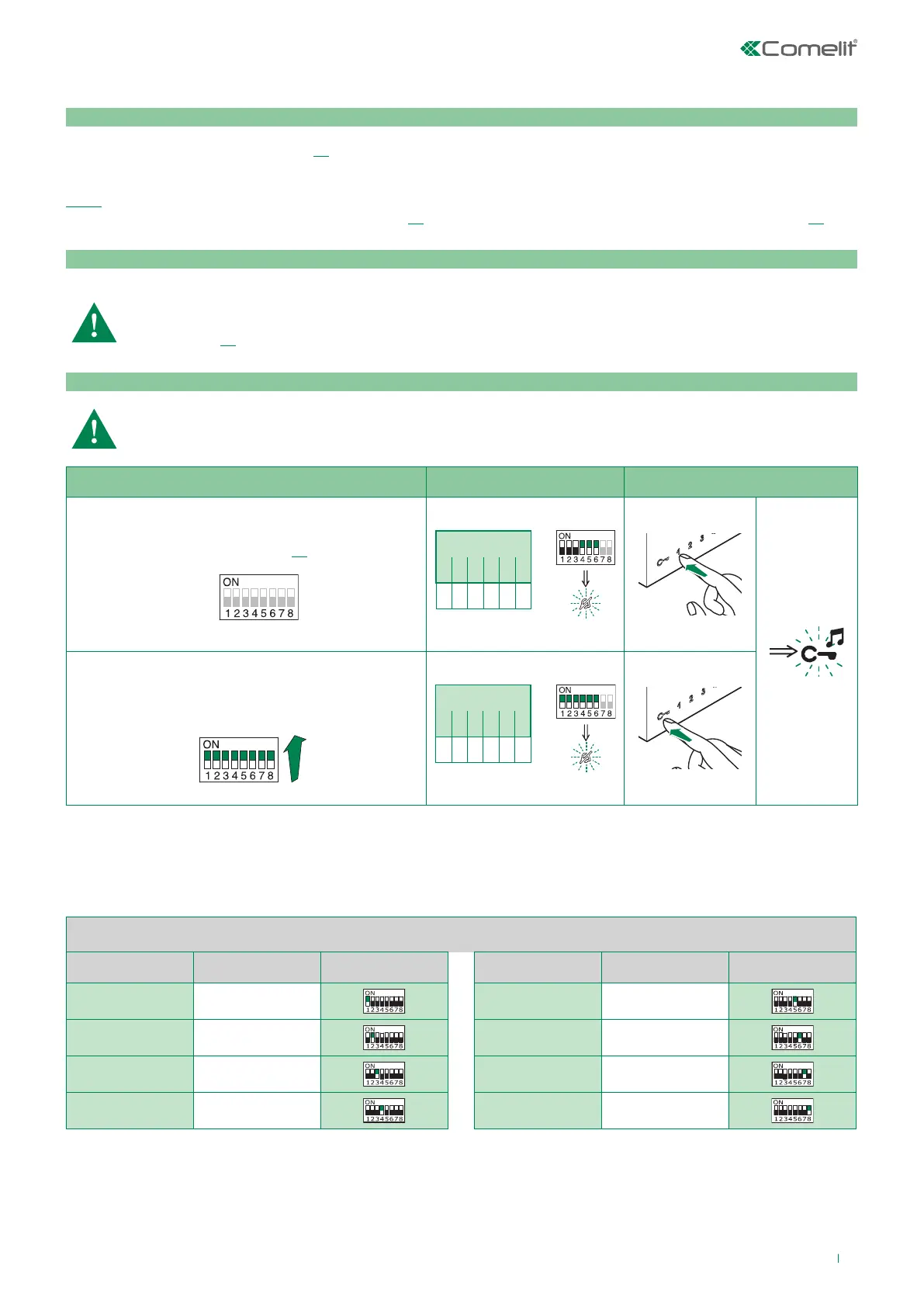 At the end, set S2 DIP switches 1-2-3-4 to the combination 1111 (PROG setting in the configuration tables on pages