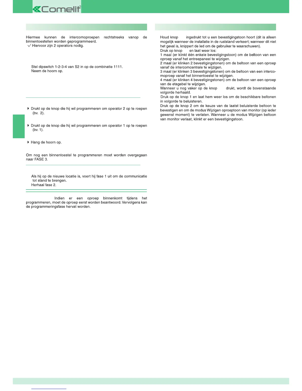 »Er komt een bevestigingstoon uit het binnentoestel van operator 2.