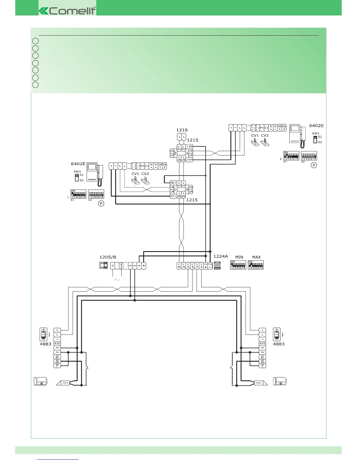 Esquema para kits bifamiliares Art. 8472MC ampliados com um segundo Art. 4883. Ligação em derivação.