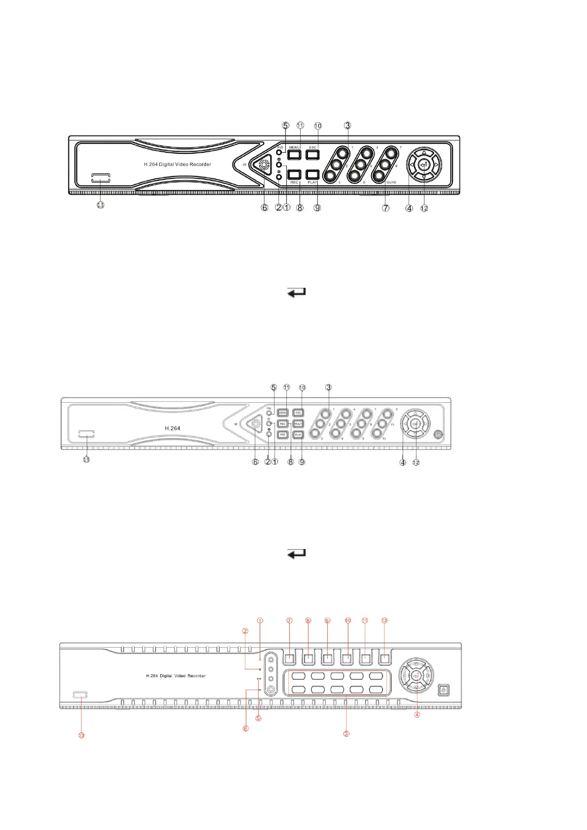 Descrizione pannello anteriore art. AHDVR080B, AHDVR082B, AHDVR083A, AHDVR085A