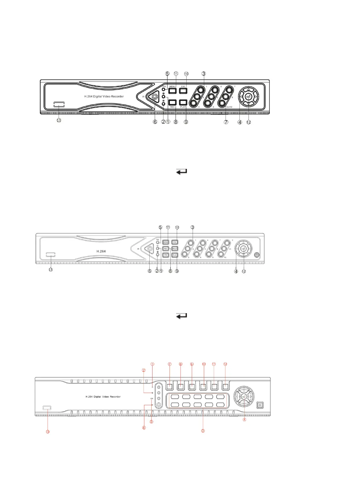 Descripción del panel frontal DVR art. AHDVR080B, AHDVR082B, AHDVR083A, AHDVR085A